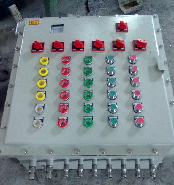 ◆ 防爆控制箱一般均為復合型結構,由外殼采用增安型結構,內裝元件采用隔爆型元件或增安型的元件,或一個(gè)隔爆型主腔內裝各種元件,或兩種結構結合成一體:外殼采用ZL102鋁合金壓鑄成型,表面高壓靜電噴塑,不銹鋼外露緊固件。內裝的元件有按鈕、控制開(kāi)關(guān)、儀表、繼電器、或各種功能模塊,其中按鈕、控制開(kāi)關(guān)、電流表和電壓表均為防爆元件,控制箱內部元件可根據用戶(hù)的要求進(jìn)行排列,可實(shí)現多種功能,控制開(kāi)關(guān)有多種功能可供選擇。指示燈也有多種顏色可供選擇,由于該產(chǎn)品變化多端,訂貨時(shí)請提供線(xiàn)路圖。